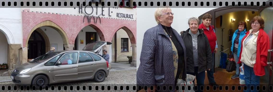 Na dvanáctou jsem se vydala na náměstí a koho nevidím. Přesně když odbíjeli na věži poledne, dorazily naše milé seveřanky. Řidička Drahuška s Vlastičkou a Milenkou to vzaly přes Kladno a dovezly nám Hevu a Milenku. A bylo nás šest :) Já jsem si ještě cvičně vyběhla pokochat se na věž.