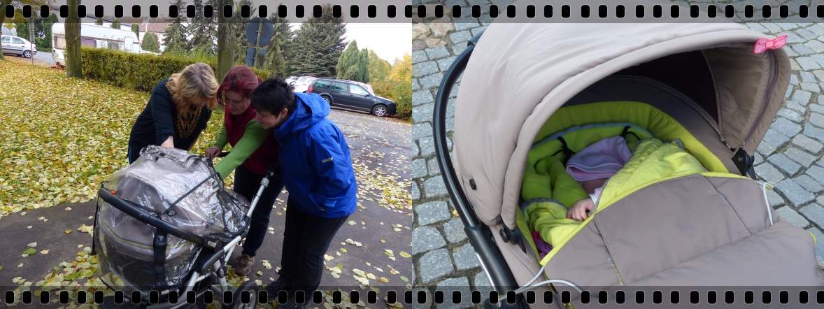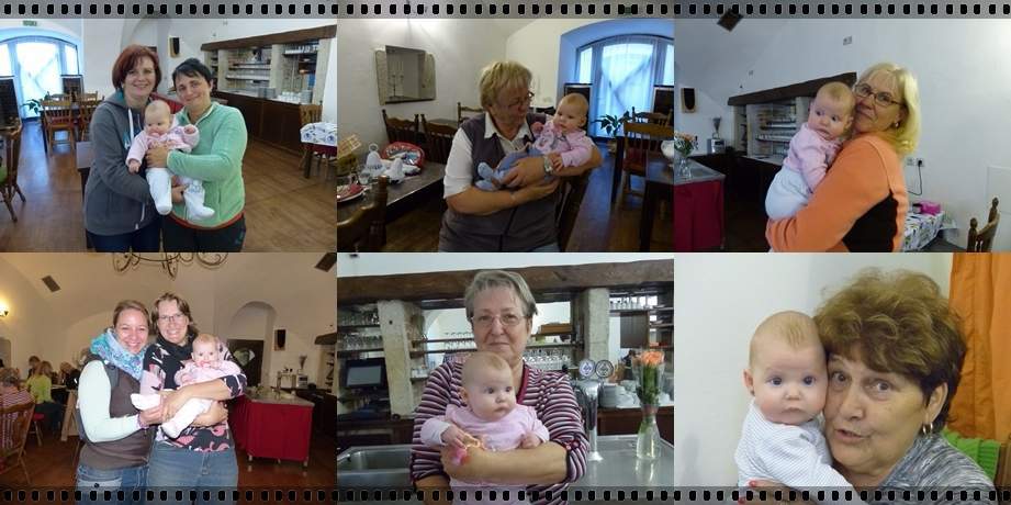Od deváté hodiny byly domluvené masáže u paní Kósové. Postupně se vystřídaly Mašlička, Martina a Milenka. A protože malá mašlička Zuzanka „vznikla“ ve Slavonicích a své prsty v tom měla i paní masérka, tak si ji přeci musela prohlédnout :) A i vy si pozorně prohlédněte kočárek, vidíte Zuzančinu SPZ? :D