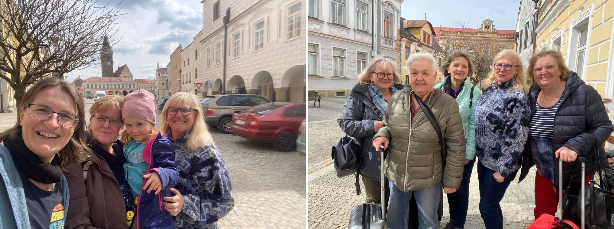 Ráno jsem v Ústí nad Orlicí naložila novou účastnici Věru s malou pomocnicí a hned v osm jsme vyrazily směr jih. Do Slavo jsme dojely před obědem a nemohla chybět selfie s Víťou a slavonickou věží. Chvilku po nás dorazil roj drátenic pod vedením Věrky Drátka. Dovezla nám Jitku a Zdenu. Ty se tentokrát vydaly vlakem. Na nádraží je vyzvedla další posila, drátenice Hanka. A aby nebylo drátenic málo, dorazila ještě Jarka.