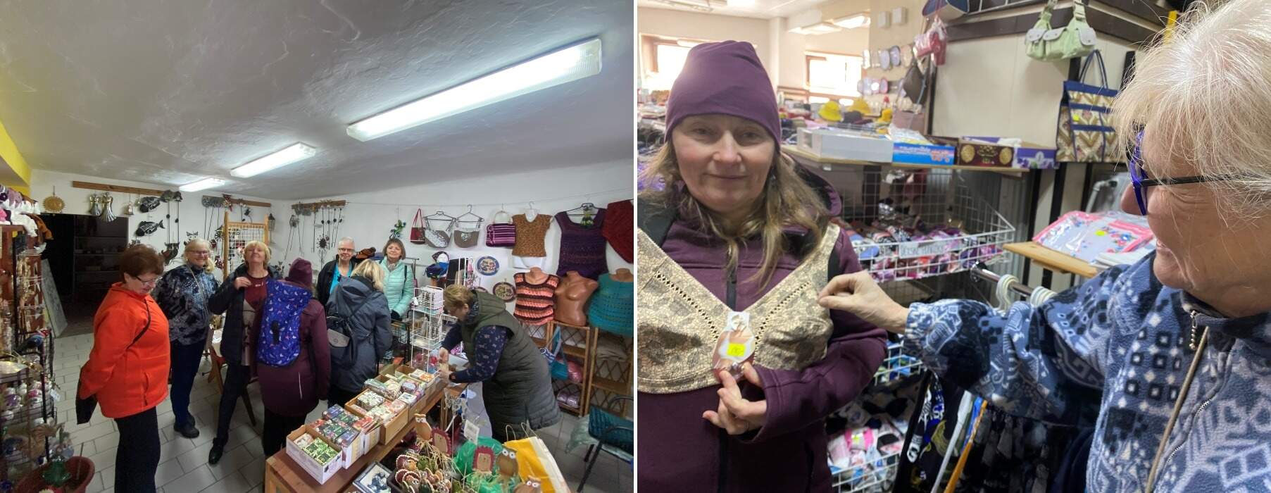 Jakmile jsme vynosily věci do našeho druhého „doma“ U Růže, zašly jsme si na oběd ke Kryzanům. Řízečky byly mňamózní a obří. Někomu zbyly ještě na večeři :D A protože každý dovezl na společný stůl nějakou tu dobrotu, hlady jsme netrpěly. Jen vyfotit jsem to nějak zapomněla. Po povinné dosycovací přestávce jsme si zatopily, přivítaly Vítinu maminku a začaly obdivovat donesená dílka nových tvořilek. Drátované dekorace a dárečky, madeirové kraslice, háčkované taštičky a čepice... Zase máme spoustu inspirace, jen ještě pořád nikdo nedonesl návod na stroj času.