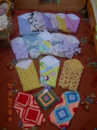 „Vyrobily jsme třicet tři zavinovaček, třicet šest párů ponožek, šedesát sedm čepiček, dvě soupravy kabátku a čepičky a padesát šest souprav čepiček s bačkůrkami,“ vyčetla výrobky Vítězslava Benešová z občanského sdružení Volba pro Slavonicko.